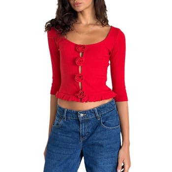 ערוץ y2k 2024 אופנה 3/4 שרוול חלולה החוצה rule התחתון 3d רוז פרחוני יבול צמרות לנשים