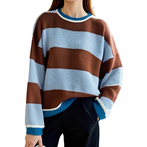 Kênh 2025 hợp thời trang của phụ nữ quá khổ đầy màu sắc sọc áo len đan Áo Thun Áo mùa thu crewneck Áo len