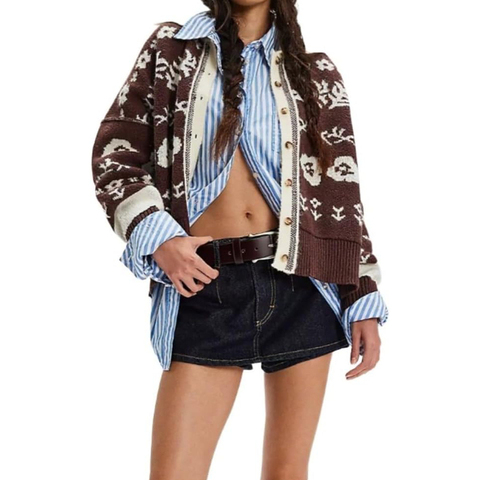 Kênh Trọng lượng nhẹ hoa cardigan Áo len cho phụ nữ nút lên hoa in mô hình cardigans 2025 mùa thu Đan Áo len Tops