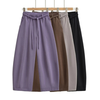 Kênh mùa thu 2025 của phụ nữ Thùng chân Sweatpants đàn hồi eo rộng chân quần giản dị bông Palazzo quần với túi