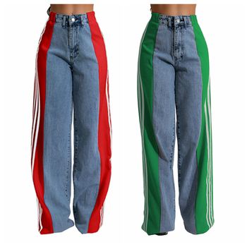 Kanal üst satış yüksek bel gevşek Denim renk blok Jean düz geniş bacak pantolon Patchwork çizgili kadın kot 2024