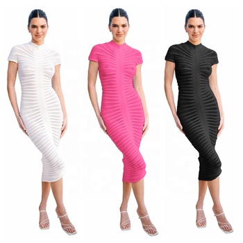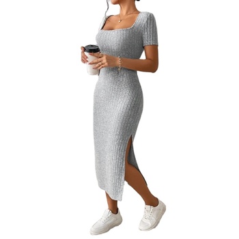 ชุดเดรสมิดิถักสำหรับผู้หญิงเข้ารูปคอเหลี่ยมผ่าต้นขา